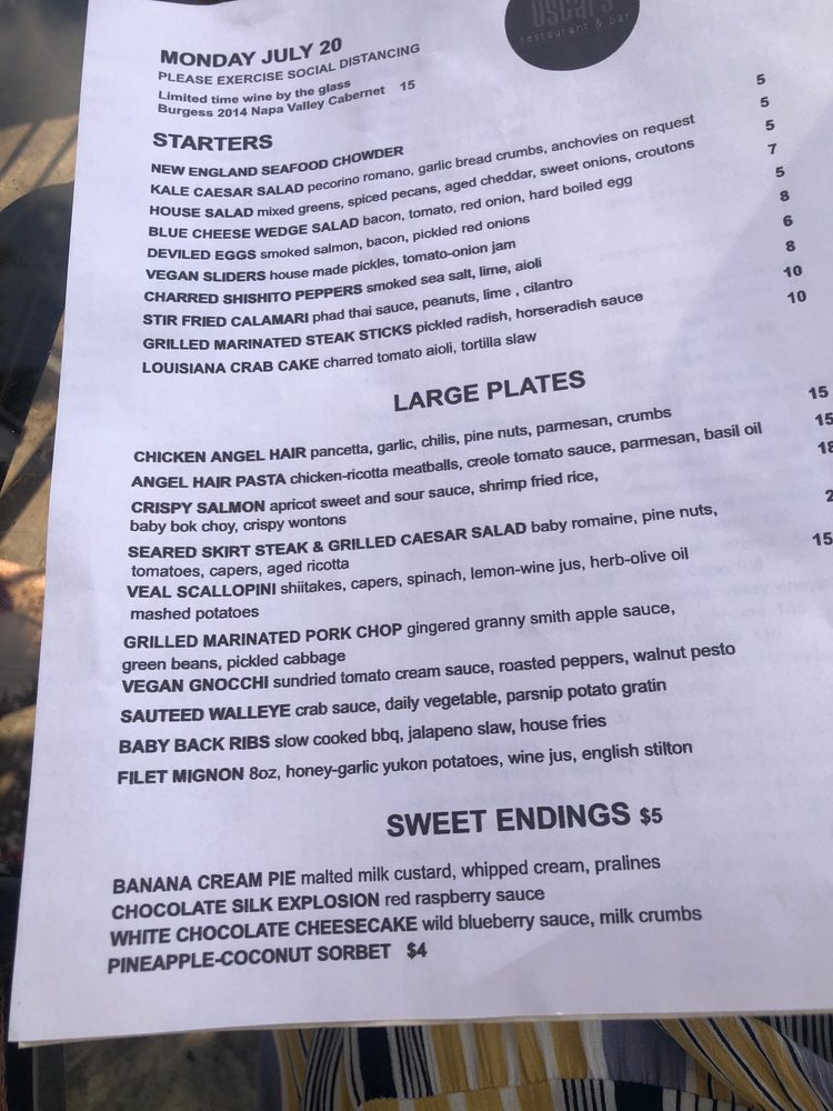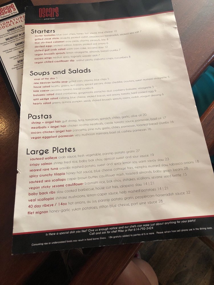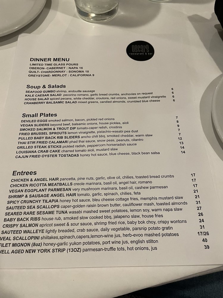 Introducing Oscar's, a classy restaurant in Dublin offering a variety of vegan and vegetarian options. With a full bar, happy hour specials, and a cozy atmosphere, Oscar's is perfect for a night out with friends or a special dinner. The menu features unique dishes like veal and calamari, as well as classic favorites like butternut squash soup and deviled eggs. Customers rave about the delicious food and excellent service, making Oscar's a must-try for locals and visitors alike. Don't miss out on the opportunity to experience the warm and inviting interior, along with the tasty dishes that keep customers coming back for more. Reservations are recommended for the best dining experience at Oscar's.